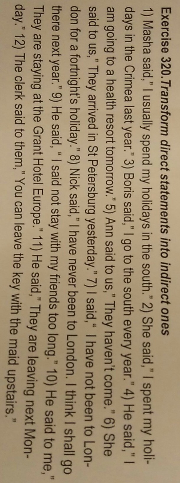 помогите решить данную проблему, нужно перевести предложения из прямой речи в косвенную.