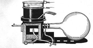 Из этой колбы откачивают воздух, понижая давление в ней.В камере Вильсона есть вентиль, который отделяет эту колбу от основной камеры. При открытии вентиля поршень внутри основной камеры(вверху) опускается.Таков принцип работы камеры.