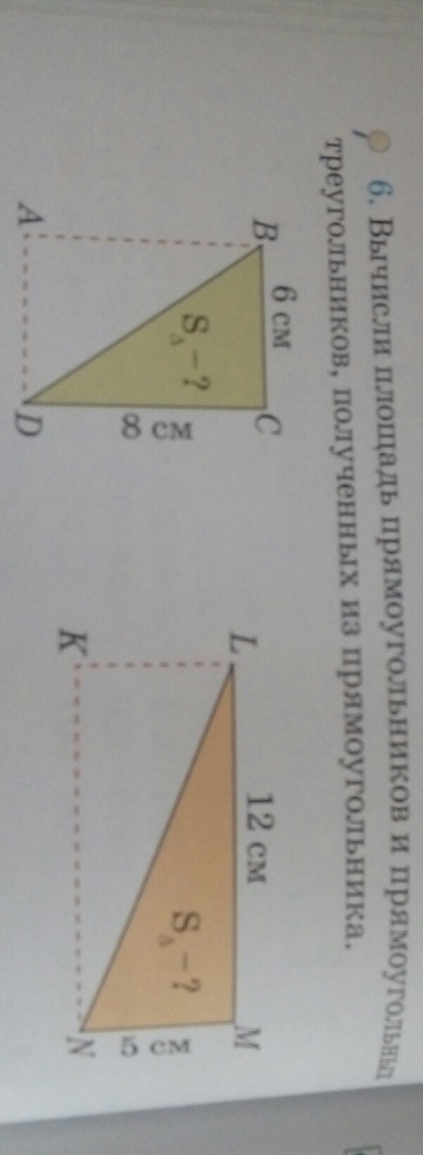 2) 12*5=60прямоуг. 60:2=30треугольн