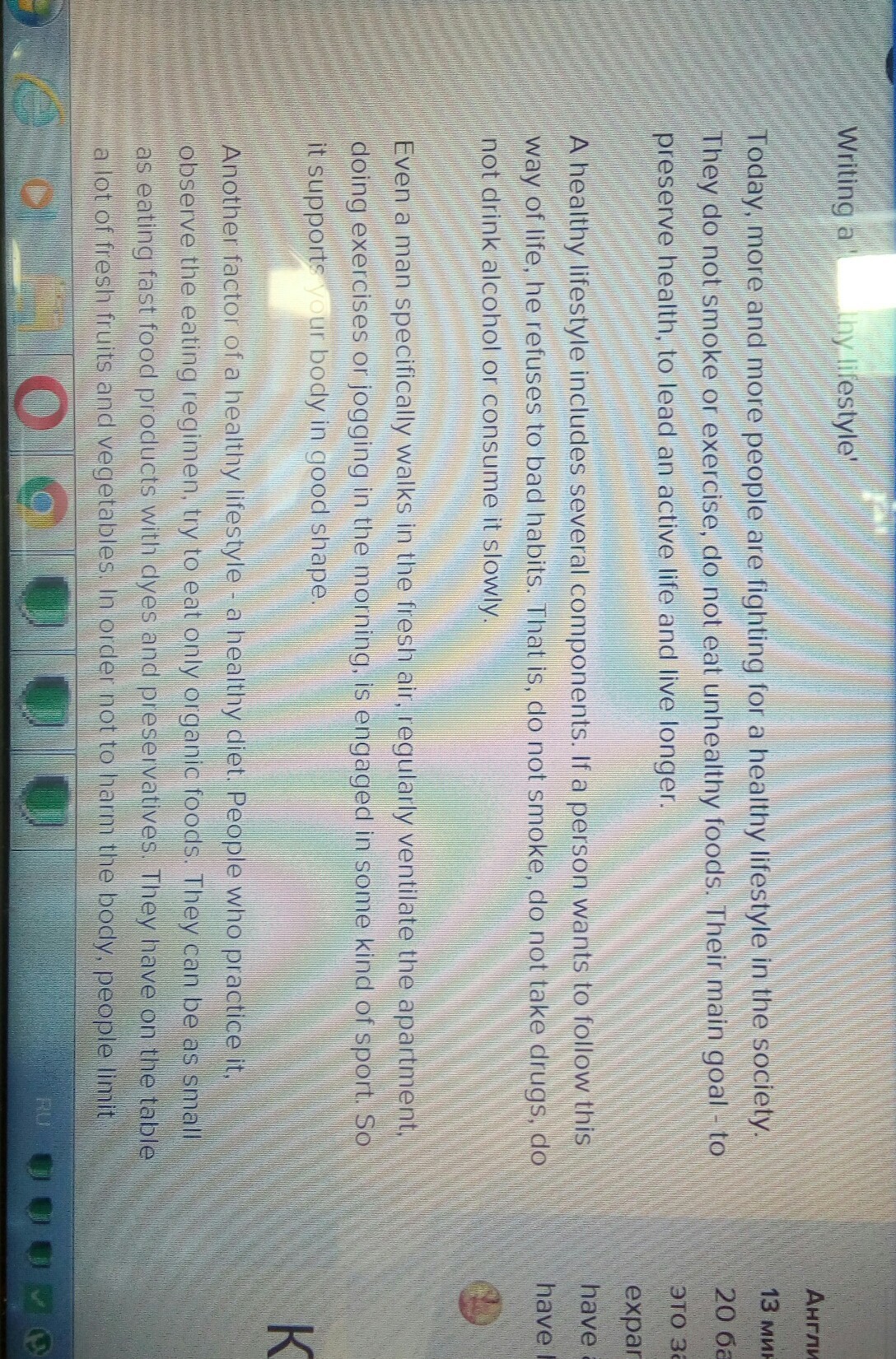 From my point of view, You are what you eat and we know that to be healthy, we need to eat healthy food. First of all our brain commands our nervous system and the way we behave. To keep it healthy we should eat green vegetables, oily fish, cereals, bread and pasta. The muscles are very important, because they control our movements. Muscles need food, that is high in protein like meat, fish and eggs. Bones give our body the support they need. To keep them healthy we should eat dairy products including milk, cheese and yogurt. As for our skin it protects the sense of touch. To keep it healthy we should eat a lot of fruits and vegetables. I am shure if you follow these recommendations you will always be healthy and strong.