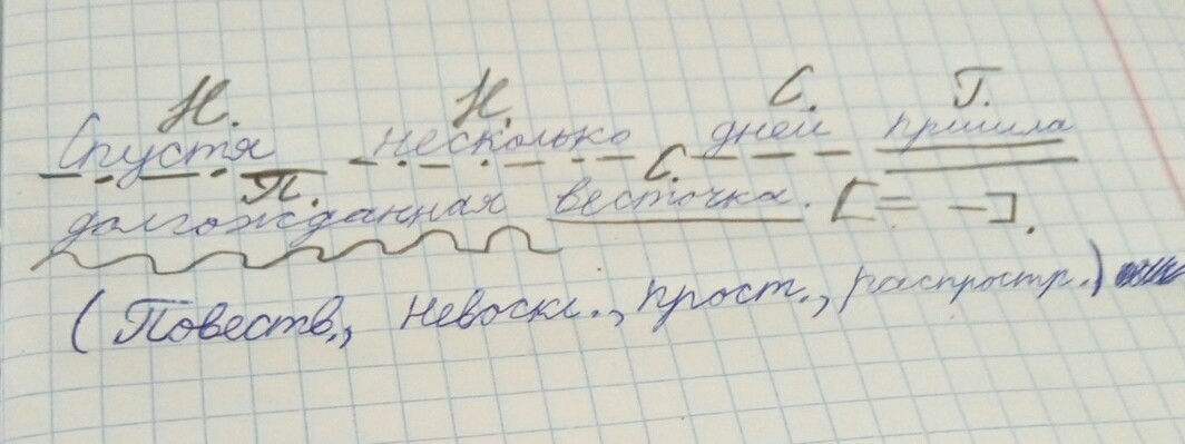 Синтаксический разбор предложение(с полной характеристикой и чем является в предложении):Спустя несколько дней пришла долгожданная весточка.