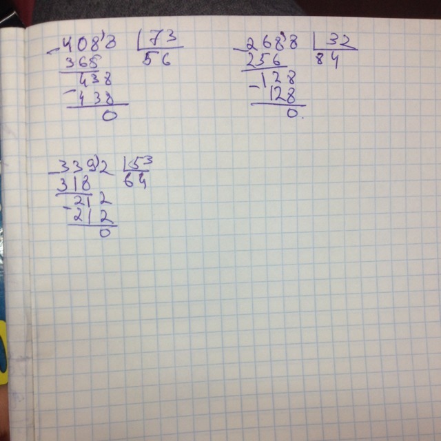 как разделить в столбике : 4088/73 , 2688/32 , 3392/53.