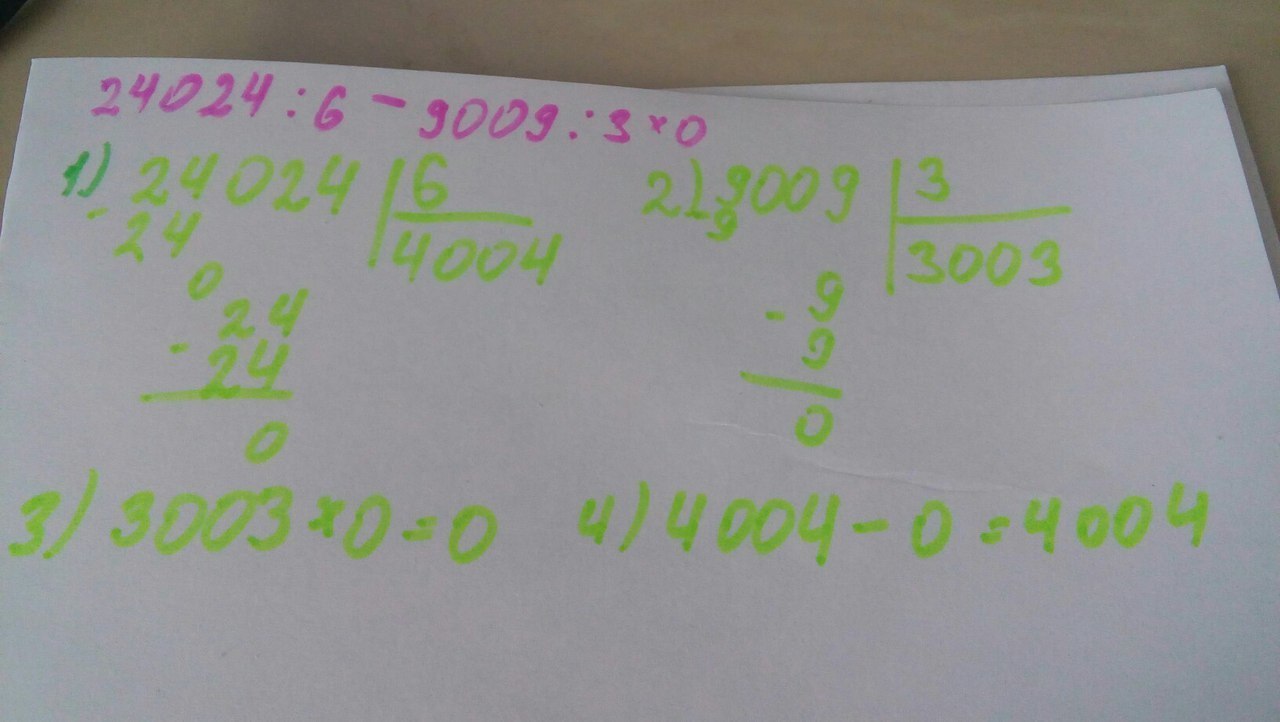 3 действие - ответ 24024 : 6 вычесть с ответом 9009 : 3
