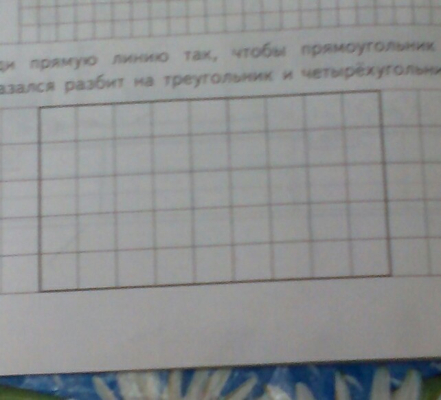 проведи прямую линию так чтобы прямоугольник на эскизе окозался разбит на треугольник и четырёх угольник