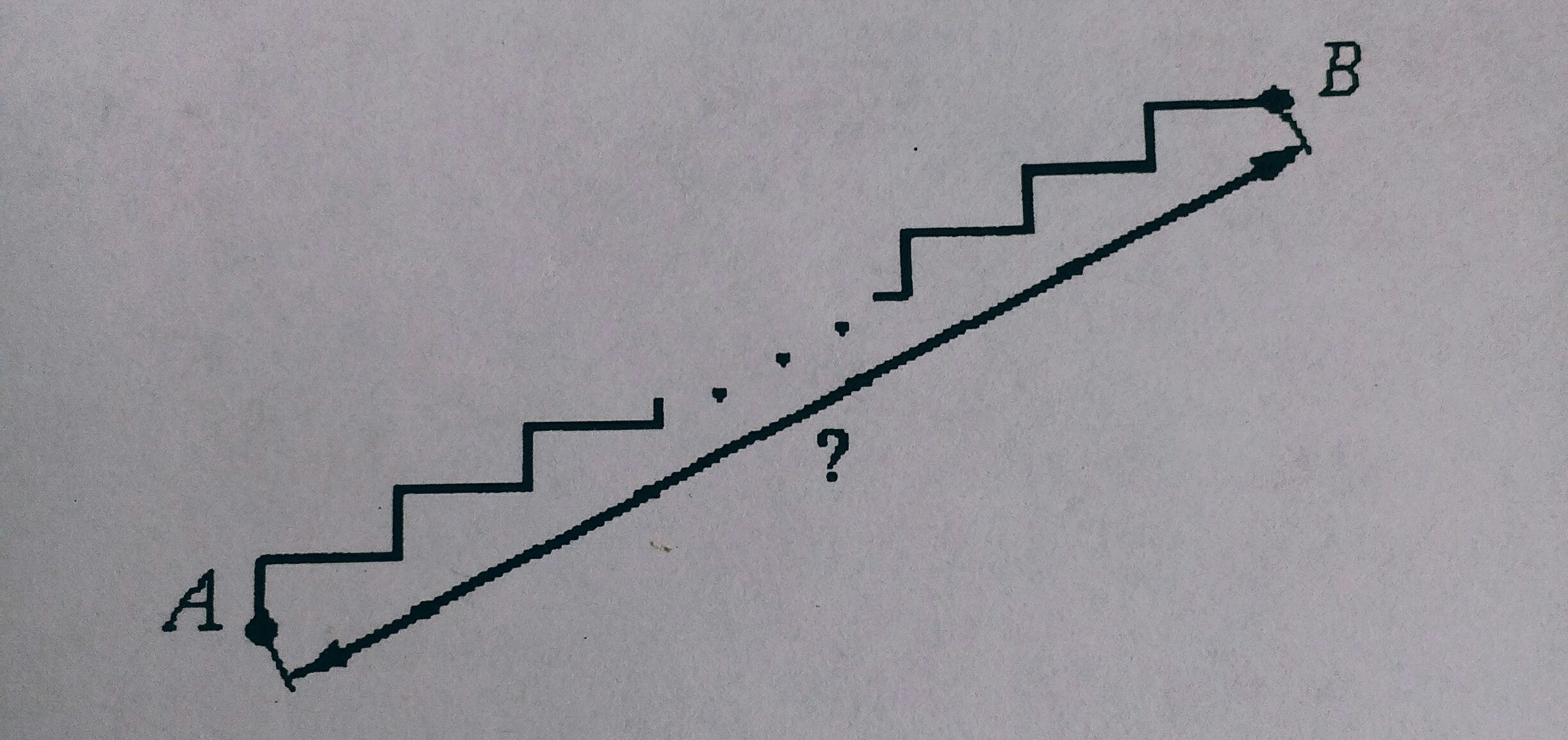 Лестница соединяет точки A и B и состоит из 20 ступеней. Высота каждой ступени равна 17,5 см, а длина – 60 см. Найдите расстояние между точками A и B (в метрах).