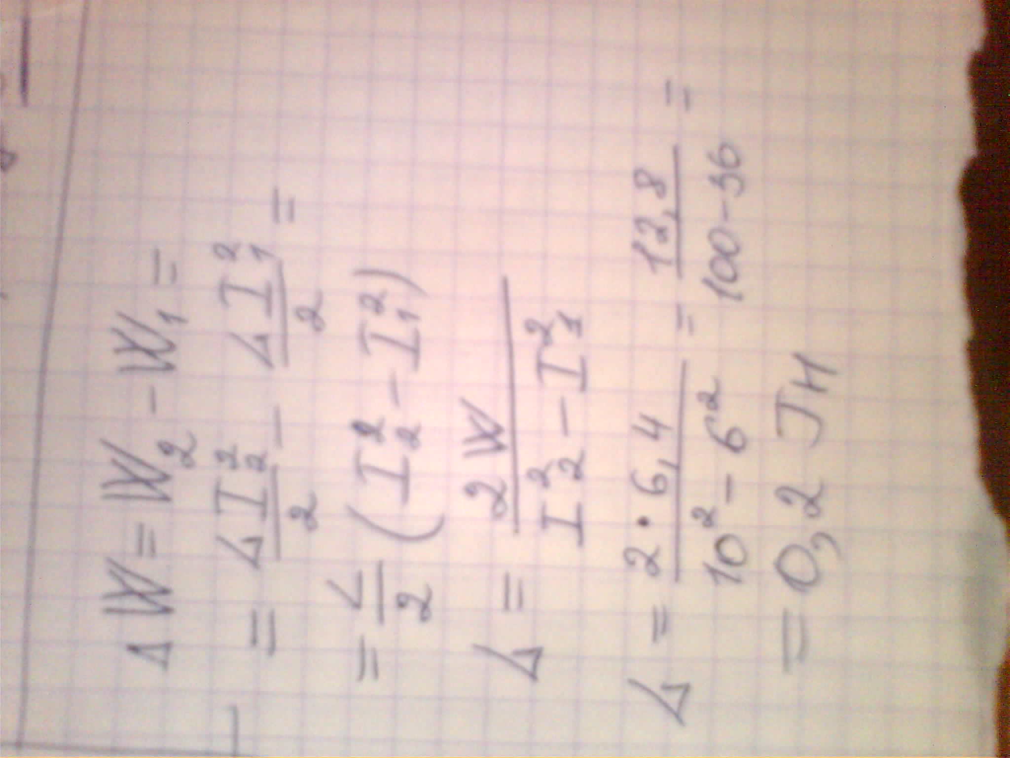 При изменении силы тока в соленоиде от 6 А до 10 А энергия магнитного поля изменилась на | дельта W|= 6.4 Дж. Индуктивность соленоида равна?