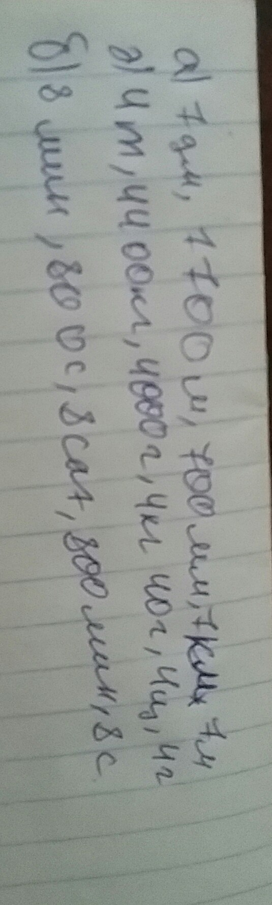 б)4г,40г,4000г,4кг,4ц,4т,44000кг.