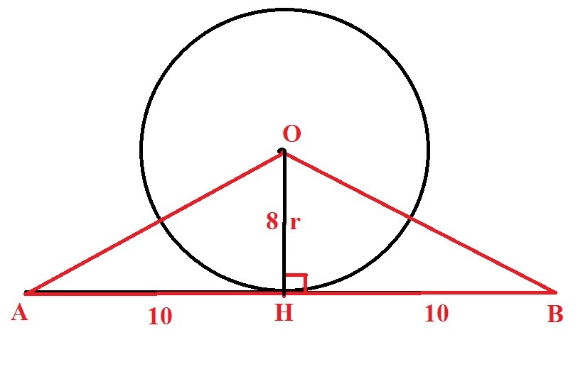 ab касательная к окружности с центром в точке o. ab равен 20 м, r равно 8 м. Найдите периметр aob.