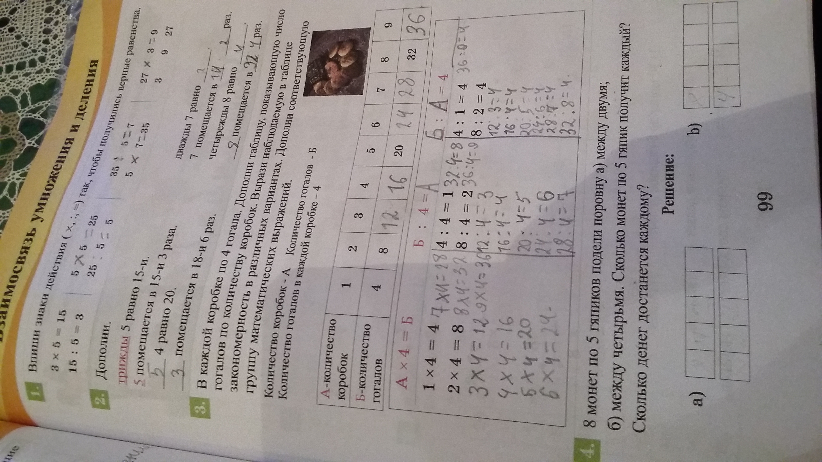 б)между4:каждый получит по 2 монеты а в деньгах это 10.