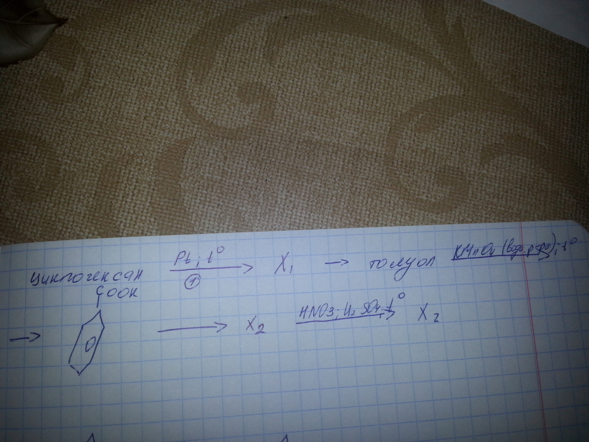 1)циклогесан (там катализатор Pt|ni..при 300 градусов)-бензол +3H2