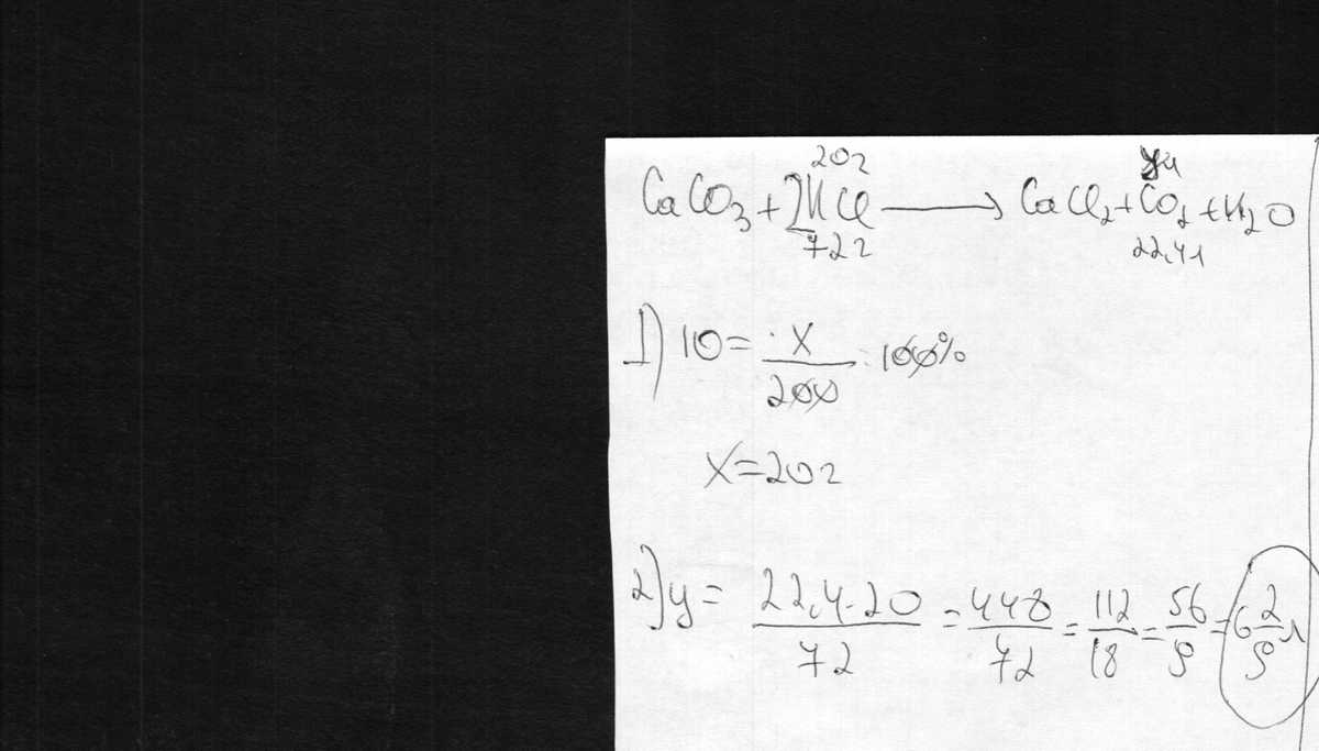 Задача. Какой объем углекислого газа получится при взаимодействии карбоната кальция с 200г 10%-ной соляной кислотой.