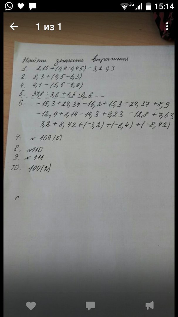 2,15 + (0,9 : 0,45) - 3,2 * 0,3 = 3,19