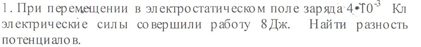 чтобы найти разность потенциалов, необходимо работу поделить на заряд
