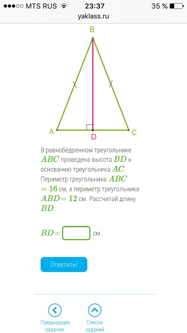 Периметр АВС= AB+DC+AC=16, AB=BC, AC=2*AD, значит