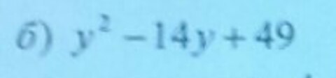 у² - 14у + 49 = у² - 2 · 7 · 7 + 7² = (у - 7)²