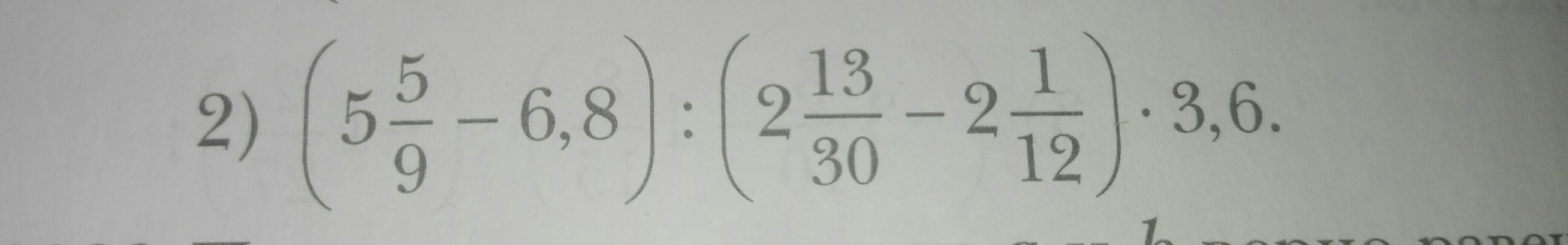 (5 5/9 - 6,8) : ( 2 13/30 - 2 1/12) • 3,6 =
