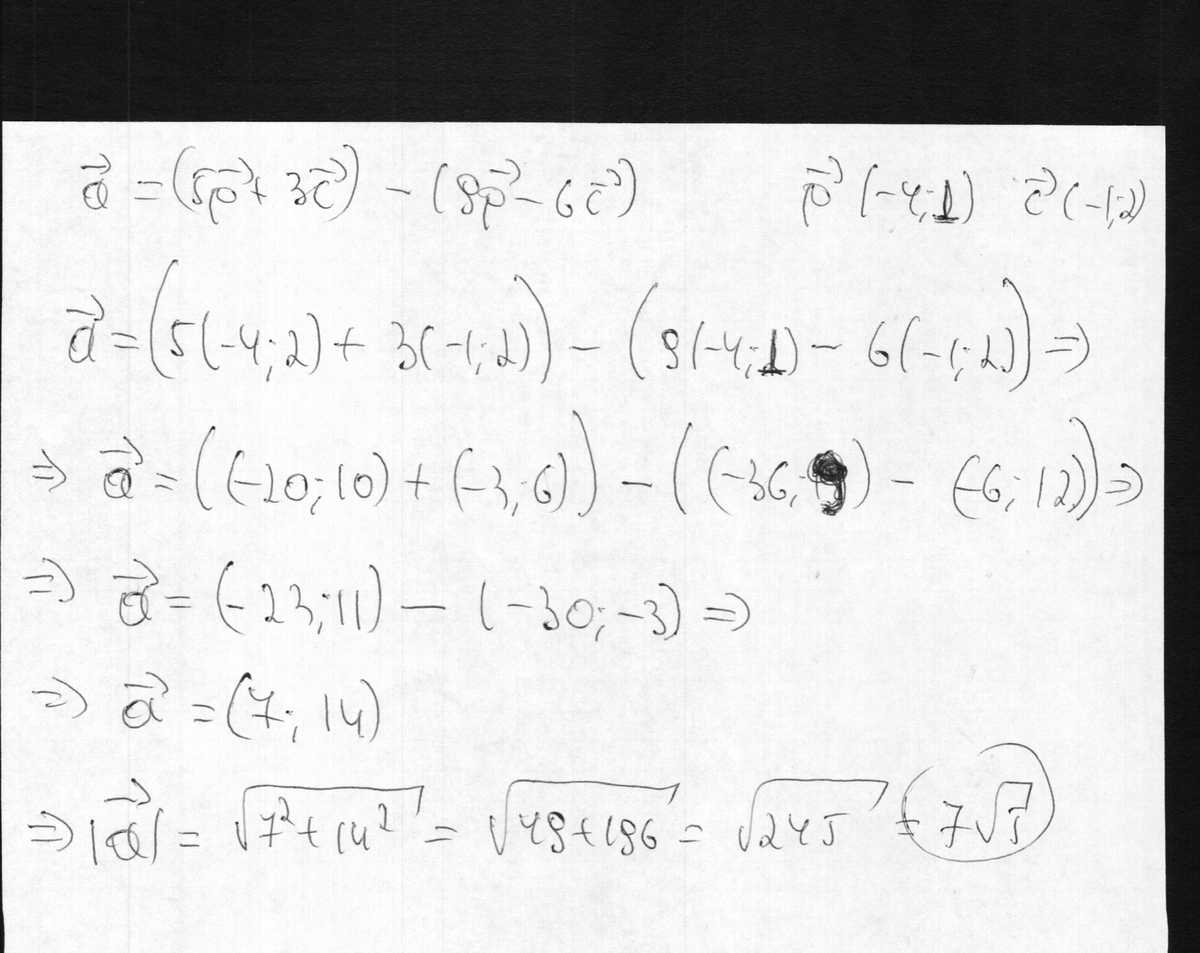вычислите длину вектора а=(5р+3с)-(9р-6с), если даны координаты векторов р(-4;1) и с(-1;2)