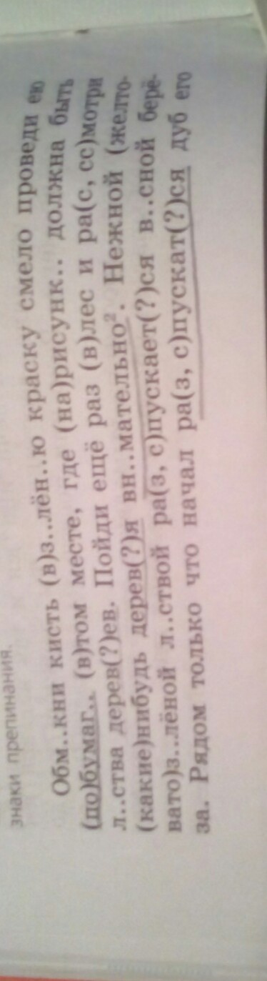 Обмокни кисть, в зелёную краску смело проведи ею по бумаге в том месте, гле на рисунке должна быть листва деревьев. Пойди ещё раз в лес и рассмотри внимательно . Нежной жёлтовато зелёной листвой разпускается весной берёза. Рядом только что начал разбускаться дуб его