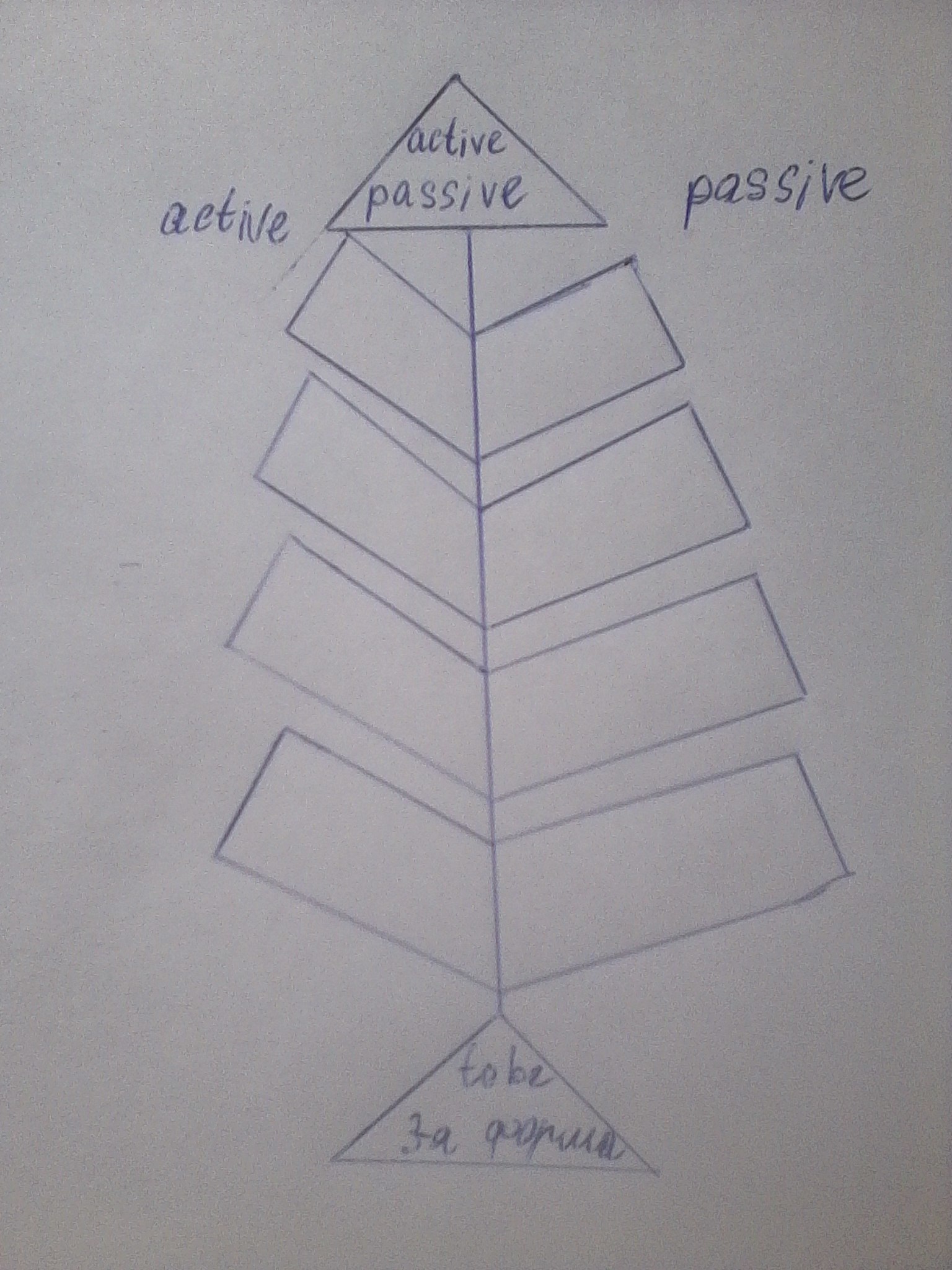 Задали задание по английскому: составьте таблицу FISH BONE со временами английского языка(Past Simle, Past Continuous и т. д.) на "голове" рыбы написано Active, Passive; на "хвосте" to be, глагол 3-ей формы. У рыбы 8 "костей"(4 слева, 4 справа), на левой стороне времена active, на правой passive. Как заполнять и что в эти "кости" писать?