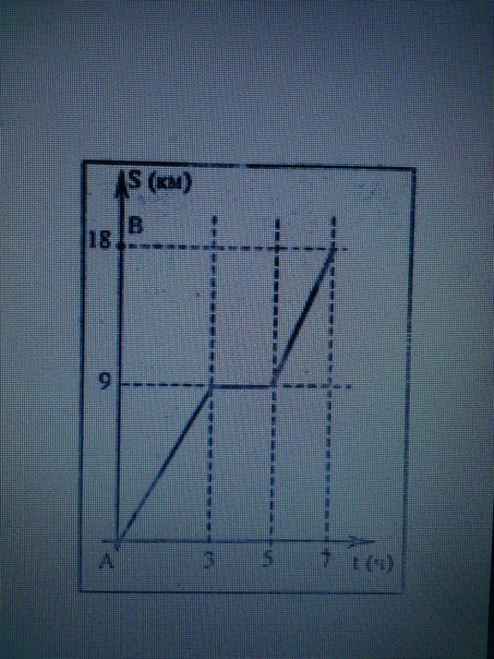 На рисунке изображен график движения туриста из города А в город В.Определить скорость туриста (в км/ч) после привала.
