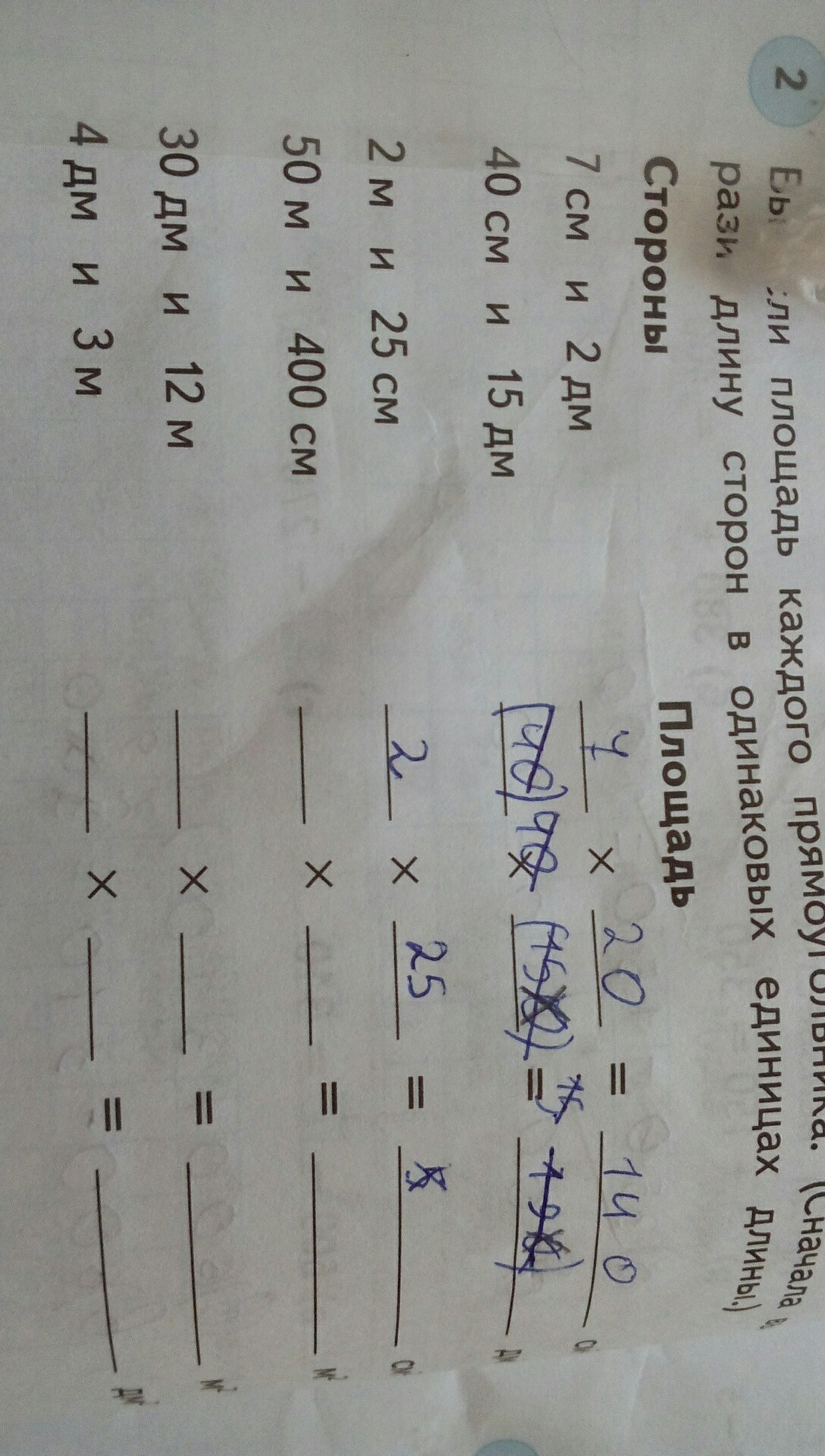 Вычисли площадь каждого прямоугольника.(Сначала выразил длину сторон в одинаковых единицах длины.)