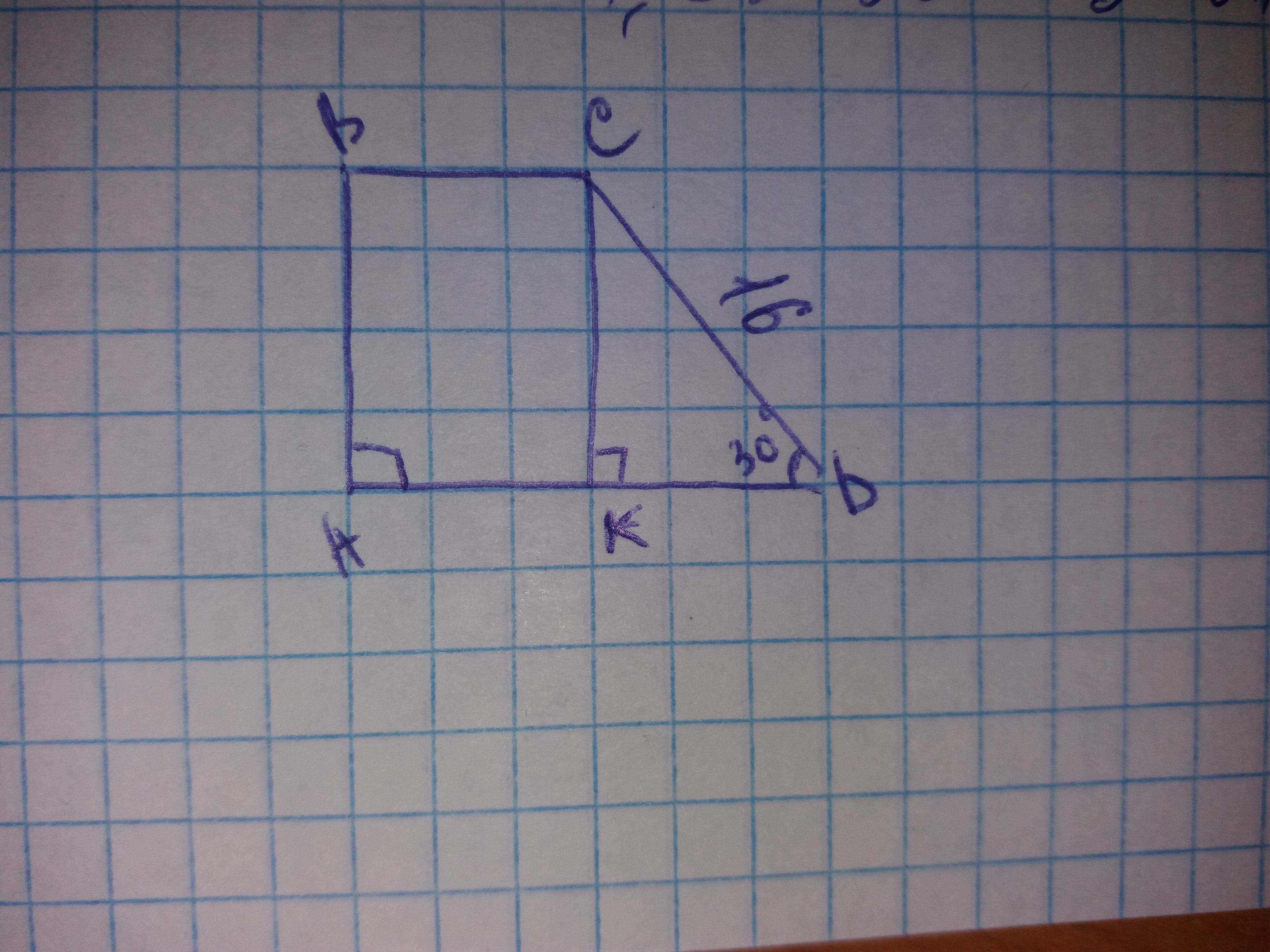 Т.к. теперь треугольник KCD прямоугольный, то СK=1/2CD (т.к. угол D 30°)
