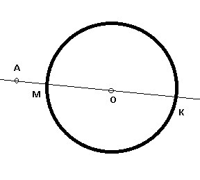 кратчайшее расстояние до пересечения отрезка ОА с окружностью