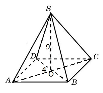 в правильной четырехугольной пирамиде высота равна 9 см. Сторона основания 4 см. Найдите объем пирамиды