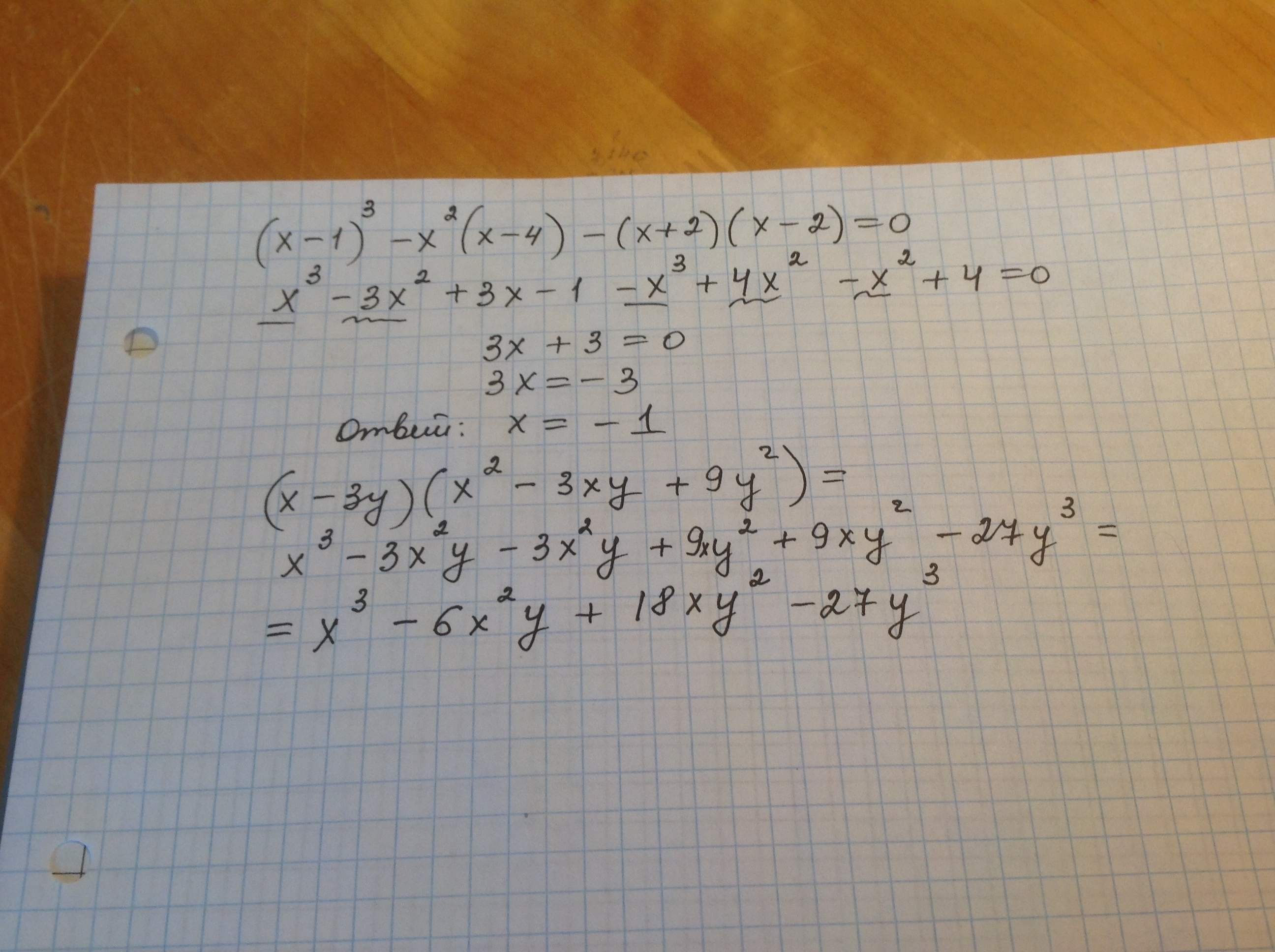 (x – 1)^3 – x^2(x – 4) – (x + 2)(x – 2) = 0.