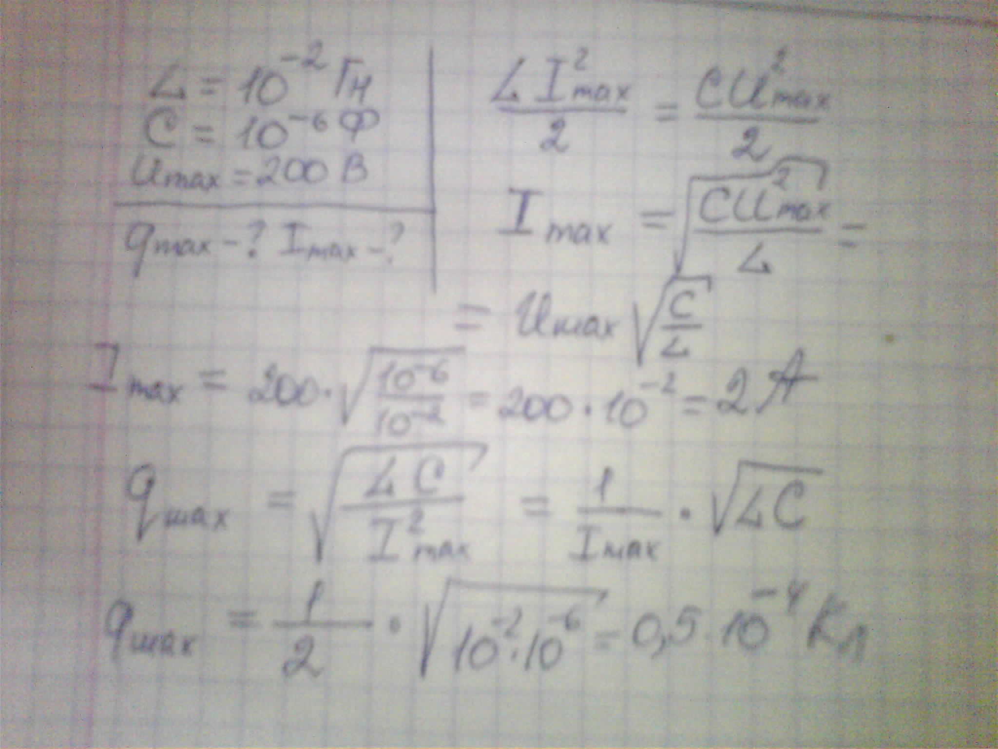 Imax=√C*Umax^2/√L=√10^-6*200*200/10^-2=2A
