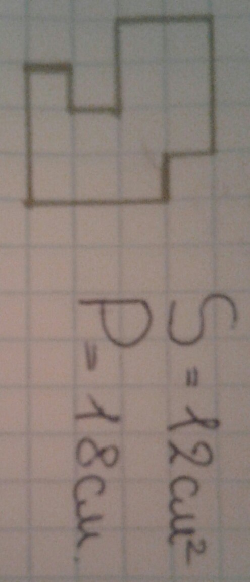 На клетчатой бумаге со стороной клетки 1 см нарисована фигура (см. Рисунок) Нарисуйте другую фигуру, состоящую из клеток, площадь которой на 1 см в квадрате больше площади данной фигуры, а периметр на 2 см. меньше периметра данной фигуры. Границы вашей фигуры должны проходить только по линиям нарисованной клетки.