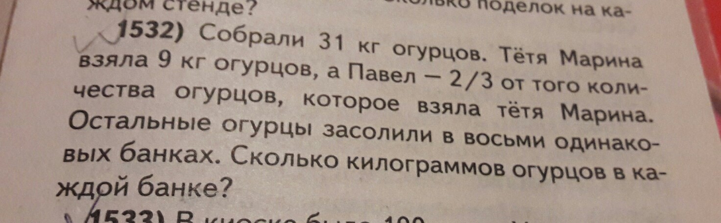 Номер 1532.Ответ должен быть:2 кг.Помогите пожалуйста.Решения с объяснением.Заранее спасибо.