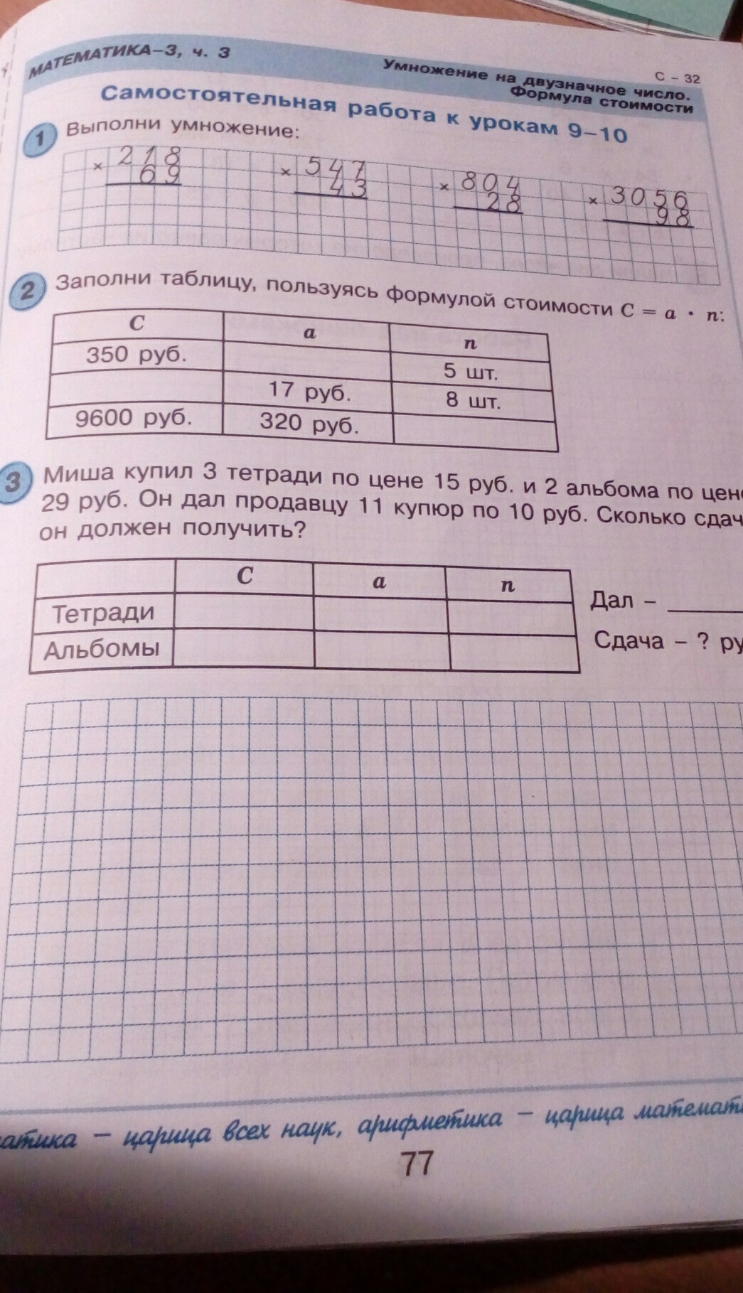 самостоятельная работа прошу помогите первое задание надо решать умножение на двух значное число