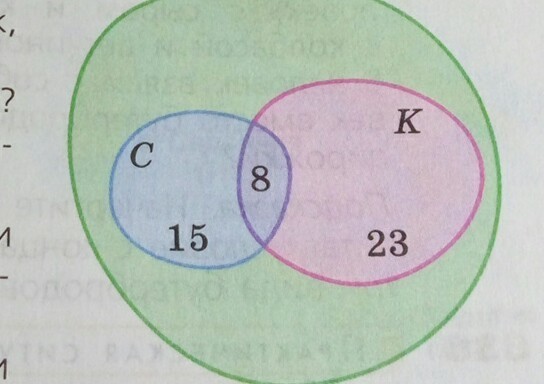 Решите ,пожалуйста! В доме 120 жильцов,у некоторых из них есть собаки и кошки. На рисунке 10.10 круг C изображает жильцов с собаками,круг K-жильцов с кошками.
