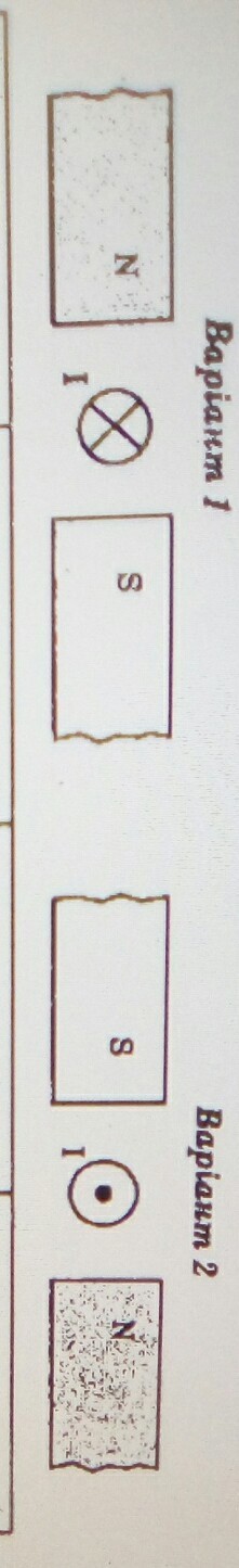 Определите направление силы Ампера,с которой действует на проводник с током магнитное поле.