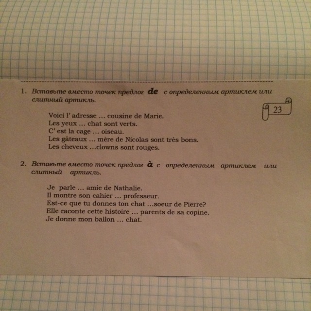 1)Вставьте вместо точек предлог de с определённым артиклем или слитный артикль.