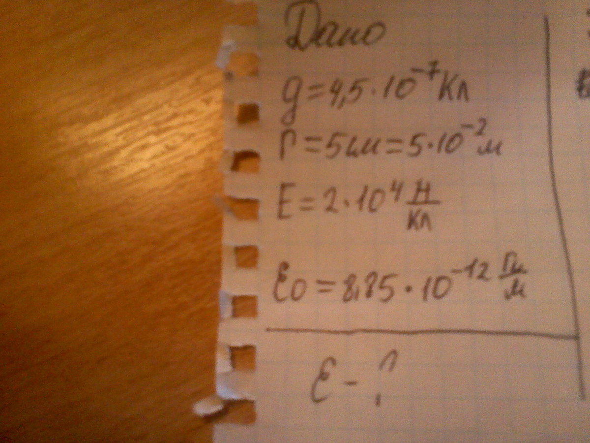 В какую среду помещен точечный электрический заряд 4,5*10^-7 Кл, если на расстоянии 5 см от него напряженность поля равна 2*10^4 HКл