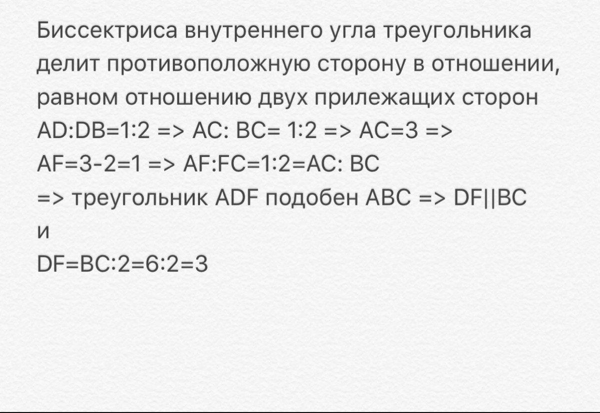 Отрезок BD биссектриса треугольника ABC, AB=12 см, CD:DA=1:3. Точка F лежит на стороне BC, CF=1 см . Докажите что FD параллельно AВ, вычислите длину отрезка DF.