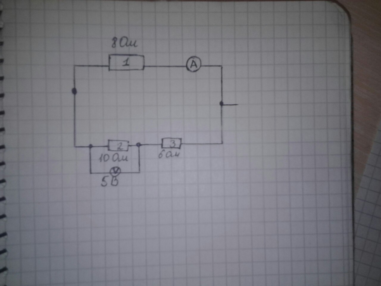 R1 = 8 Ом R4 = R2+R3 = 10 Ом + 6 Ом = 16 Ом (последоват.)