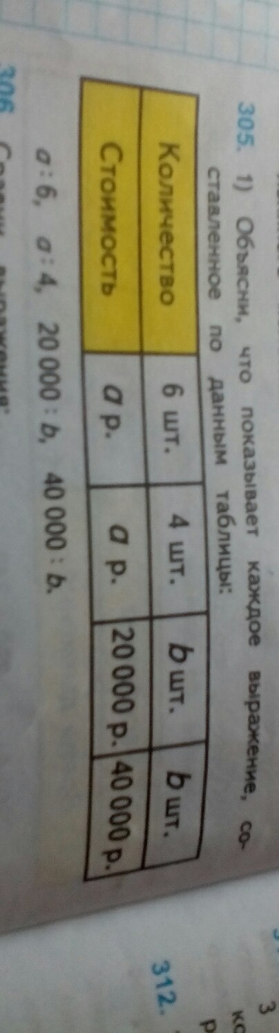 Каждое выражение под таблицей показывает стоимость одной штуки.