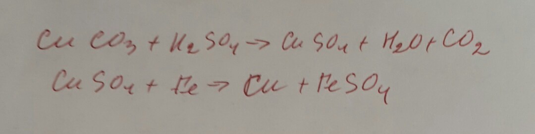 Даны вещества: Ag, H2SO4(разб), Cu(OH)2, Fe, Na(OH), CUCO3. Используя воду и необходимые вещества только из этого списка, получите в две стадии медь.