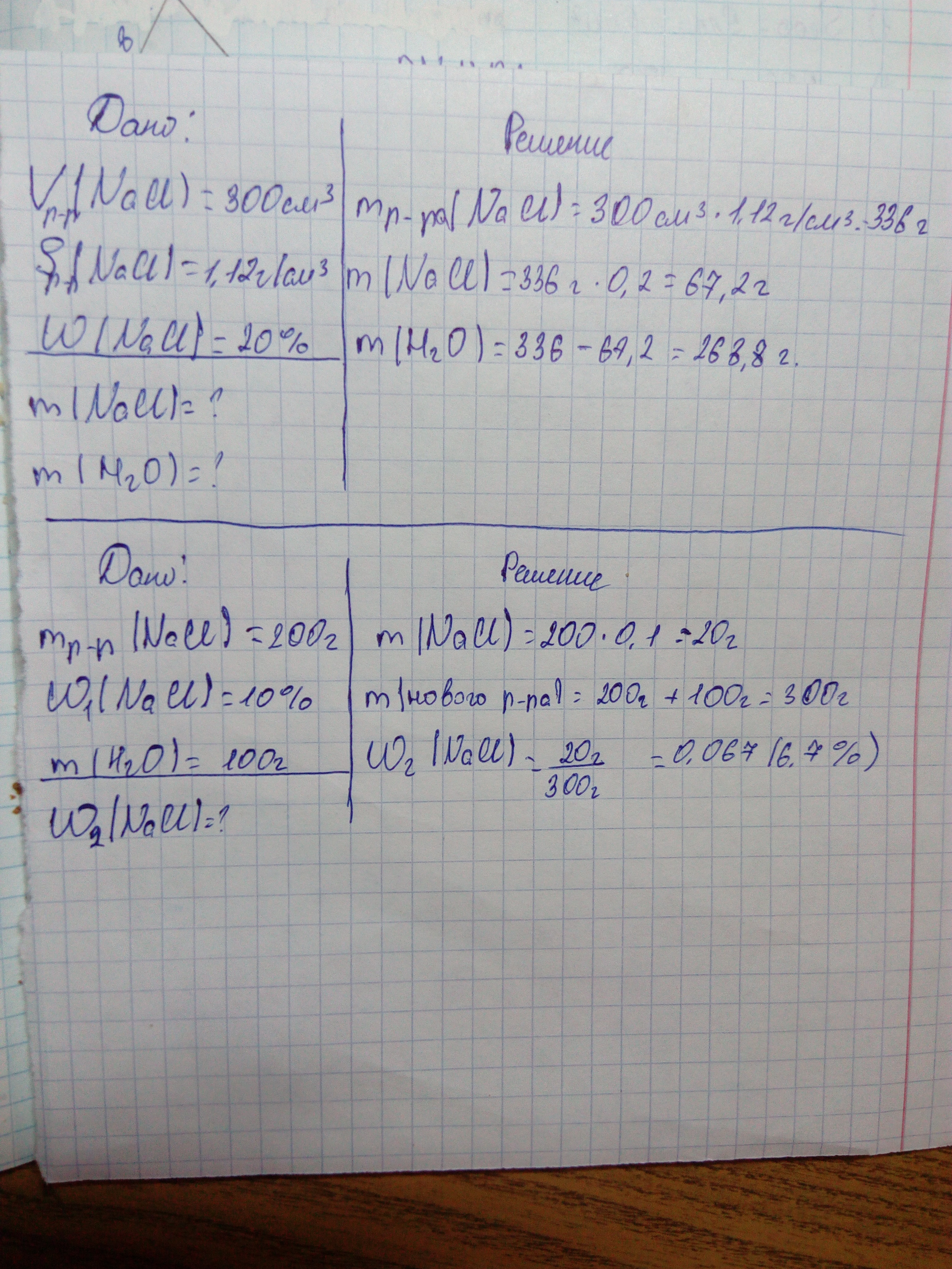 Определить массу соли и воды необходимые для приготовления 300 мл 20% раствора с p=1,12.