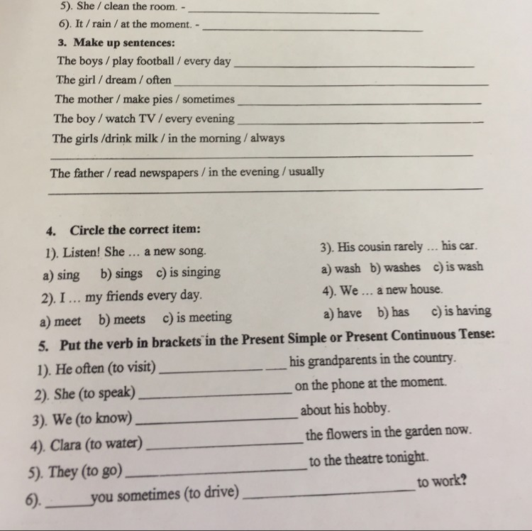 3. 1) The boys play football every day. 2) The girl often dreams. 3) The mother sometimes makes pies. 4) The girls always drink milk in the morning. 5) The father usually reads newspapers in the evening.