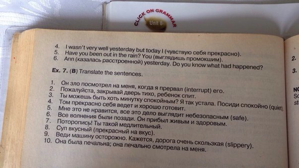 6) All the excitement was behind. He arrived alive and healthy. 7) hurry! You're so slow. 8) The soup is fine. 9) Drive carefully. It seems the road is very slippery. 10) She was sad. She looked at me sadly