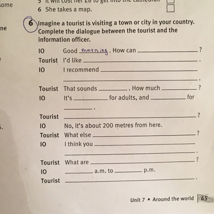 good morning. How can i help you? I'd like to stay somewhere for one night. I recommend you our hotel. That's sounds good. How much does it cost? It's 40 euros for adults? and 50 euros for childran. What about swimming pool? is it near or not? It's about 200 metters from here. What else you can say? i think you know everything now. What are (извини не знаю) 7:00 a.m to 2:00 p/m. thank you so much