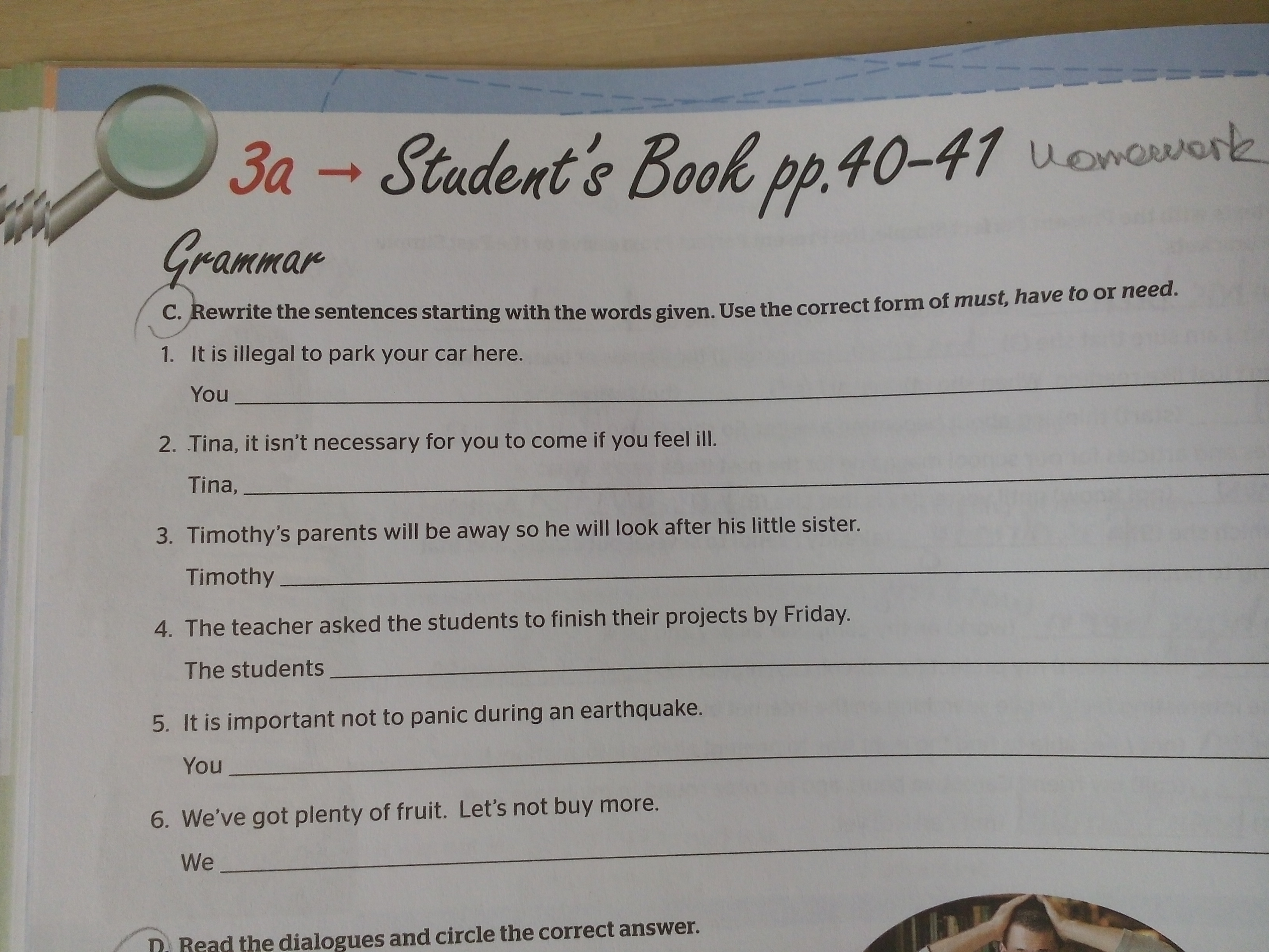 3. has to / needs to / must lookafter his little sister while hisparents are away.