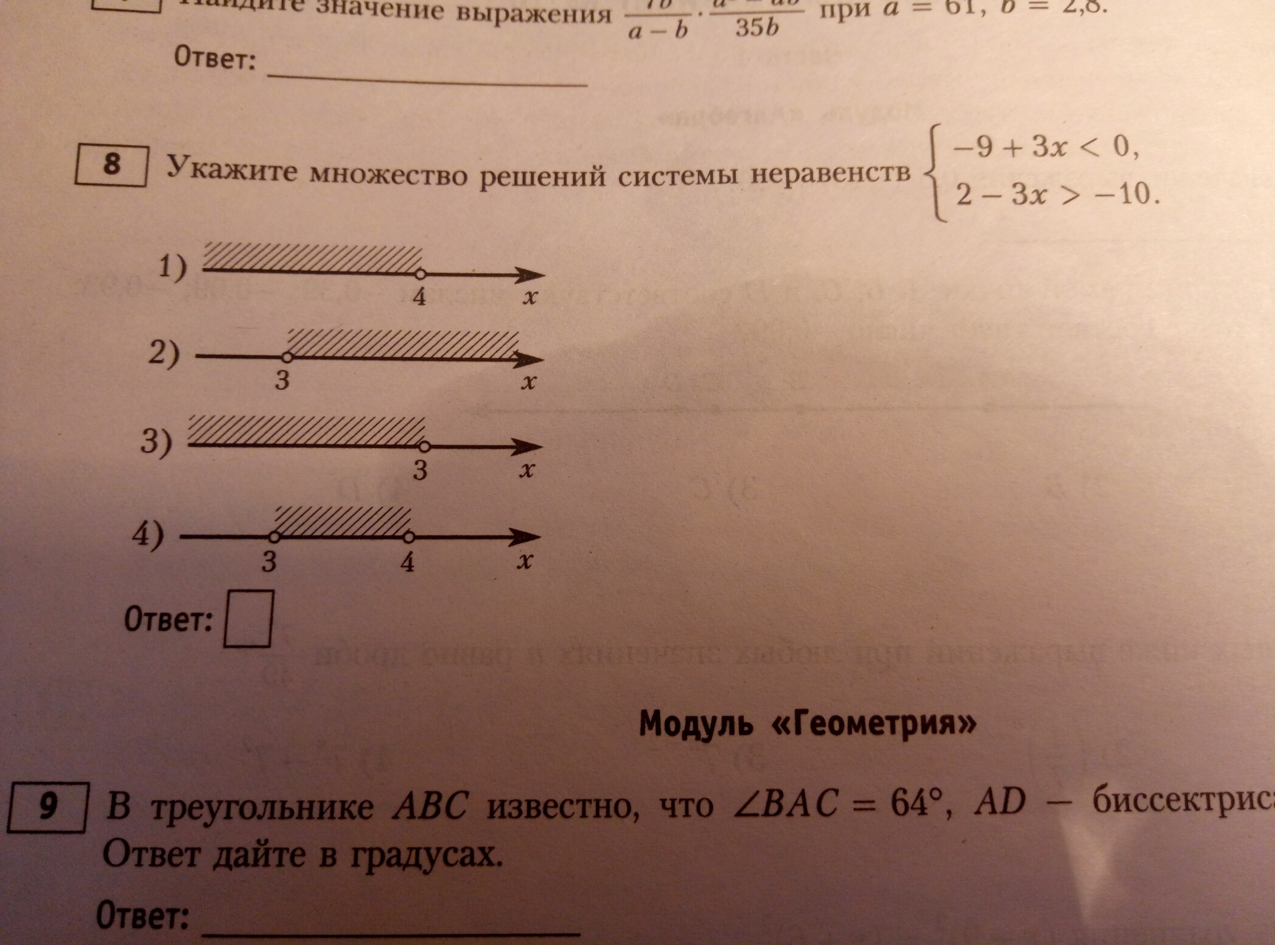 Пересечение решений x<3 ∩ x<4