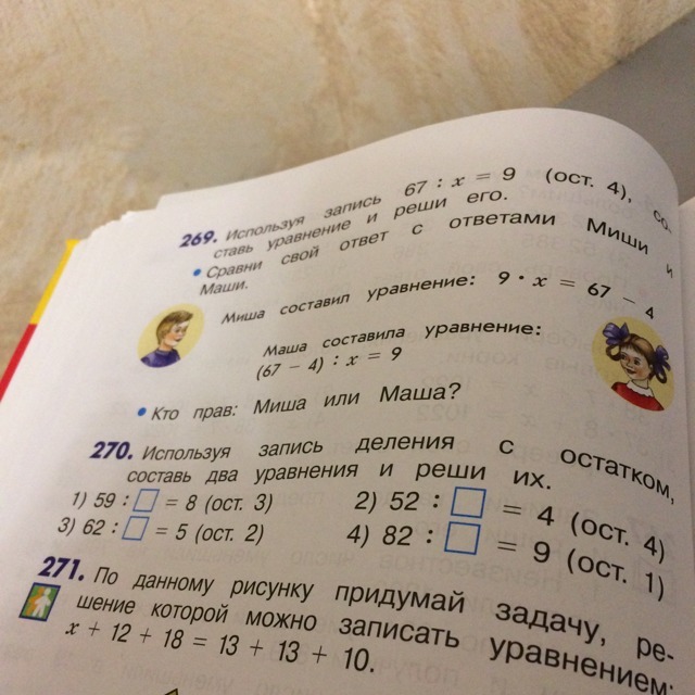 Используя запись деление с остатком составь 2 уравнение и реши их номер 270 помогите!!!