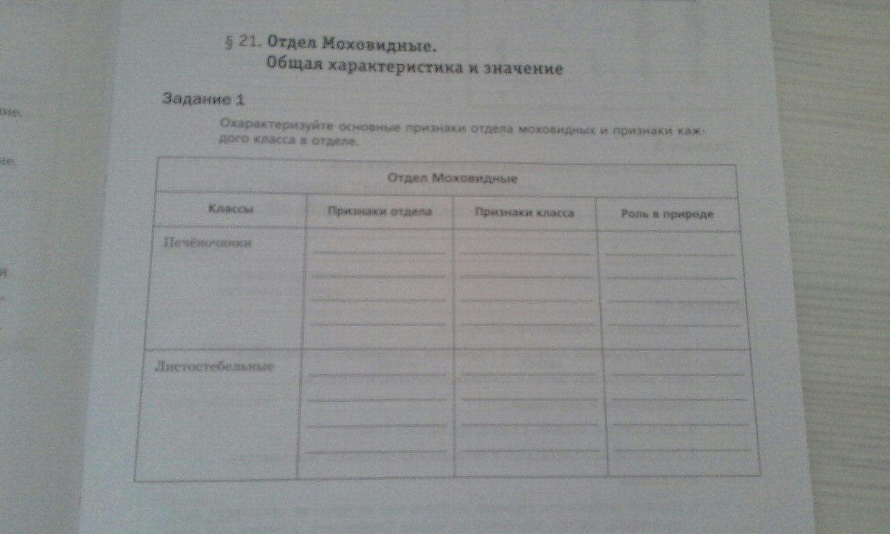 Охарактеризуйте основные признаки отдела моховидных и признаки каждого класса в отделе.