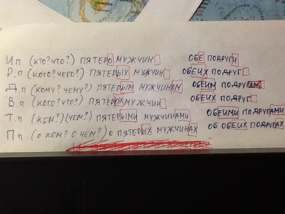 Склонение по падежам числительных пятеро, обе, 251-Ый. В порядковом числительном 251 склоняется только разряд единиц: первый, первого, первому, первого, первым, о первом.